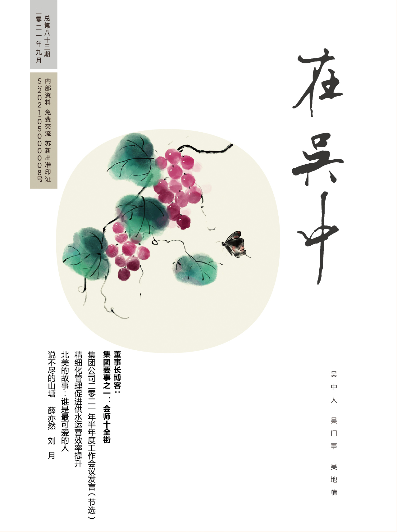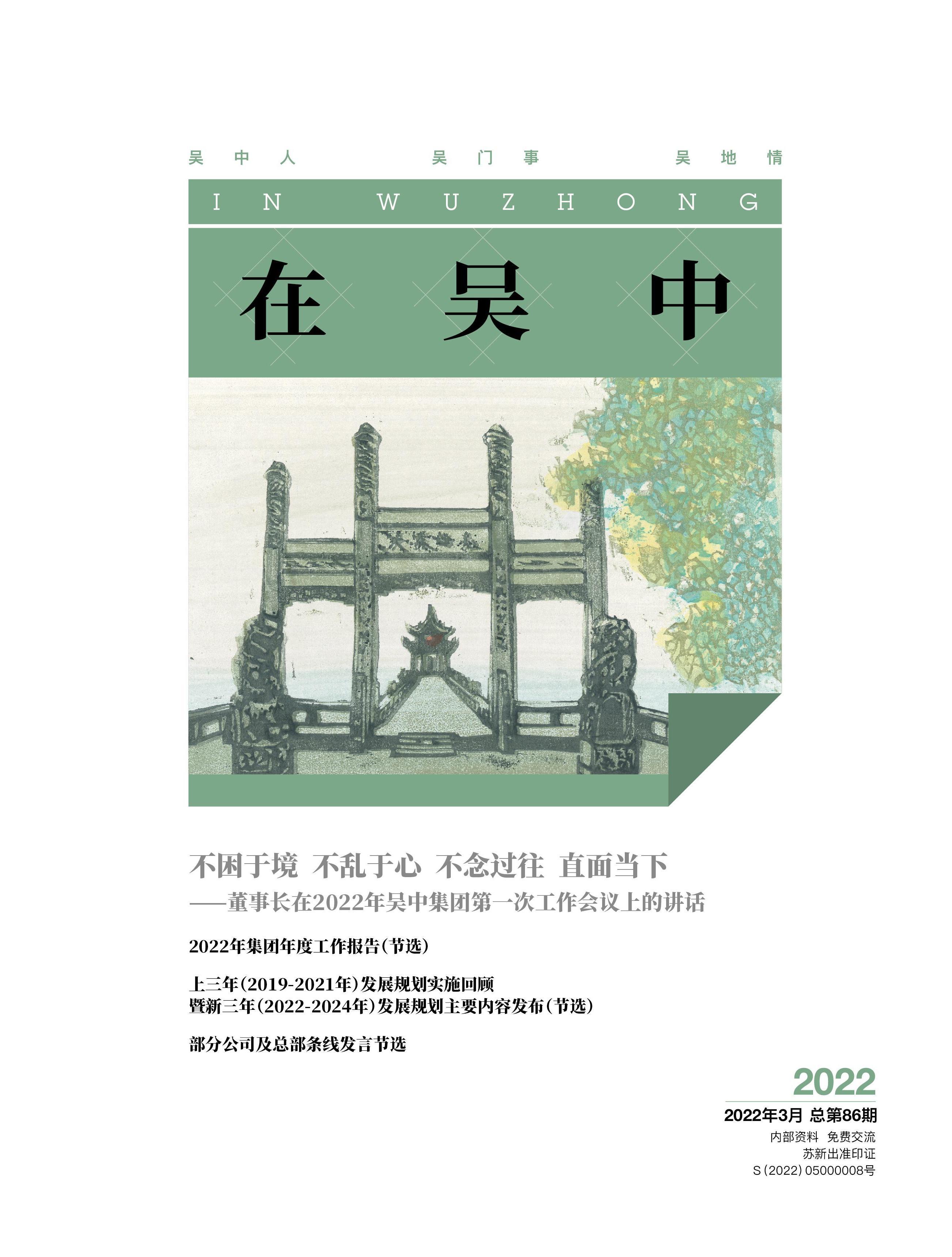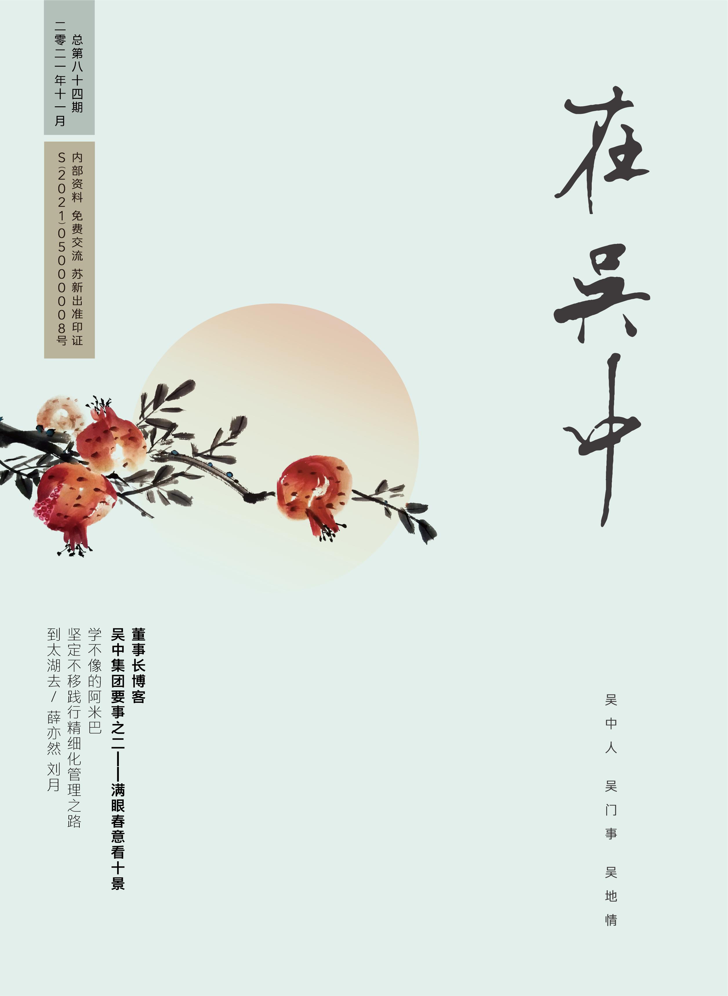 《在吳中》創(chuàng)刊于2005年,蘇州市十佳內(nèi)刊。以述吳中人、記吳中事、傳吳中情為宗旨,堅(jiān)持記錄吳中集團(tuán)的發(fā)展,為品牌建設(shè)發(fā)展助力。《在吳中》單期印刷1500冊,主要用以企業(yè)內(nèi)部交流,其意在傳達(dá)的吳中集團(tuán)的力量、文化和精神。每期《在吳中》都記載著吳中人工作、學(xué)習(xí)、生活的實(shí)時(shí)動態(tài),所見所聞、所思所想、所作所為,總結(jié)借鑒企業(yè)經(jīng)營管理之道,汲取吳地人文精髓,廣受社會各界的好評和認(rèn)可。